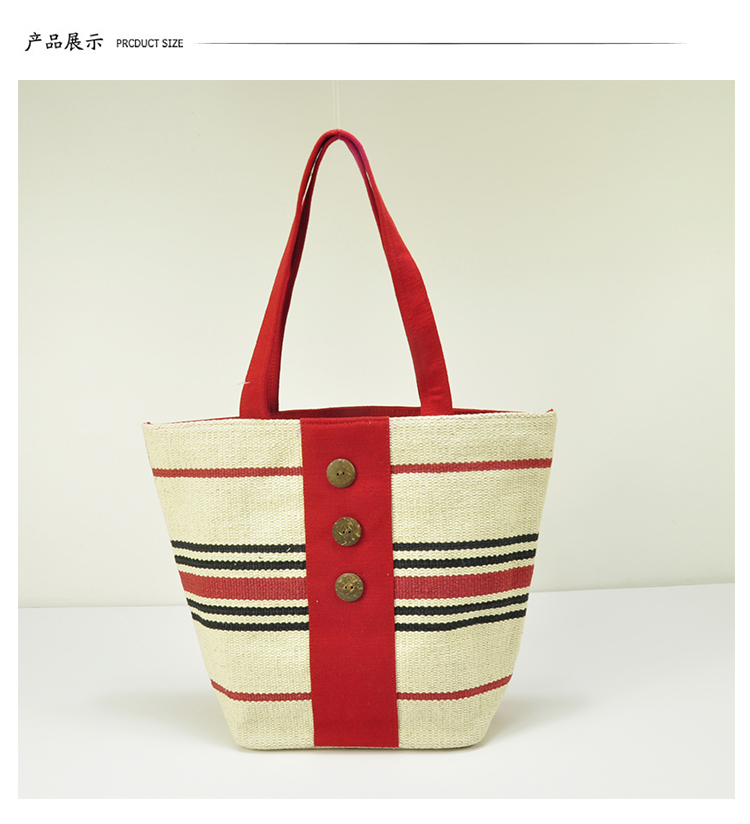 孟加拉進口手工編織黃麻背包單肩手提彩包--2018進博會條紋女包森系