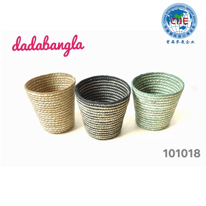 孟加拉進(jìn)口2018進(jìn)博會(huì)手工編織黃麻儲(chǔ)物籃花籃裝飾籃多用途收納籃